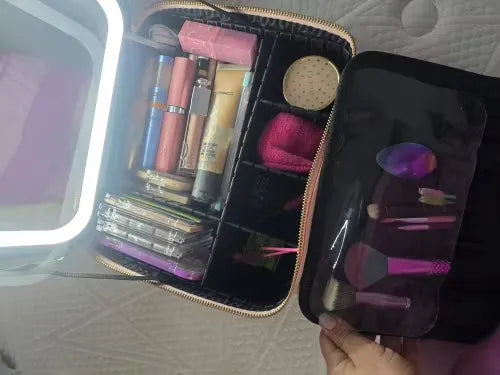 WOW!! This MakeUp case is a lifesaver!!! 🌟 Ever since I got it, my makeup routine has transformed. Whether I'm in a dim cafe or a friend's bathroom, I always have perfect lighting now!! It fits all my must-haves like my foundation, mascara, and gloss. The PU leather is a slick touch that saves it from my many spills LOL. To anyone always on the move, this is IT xD Cheers to more flawless looks now wherever I am.
